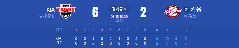 키움 선발 에릭 요키시가 3이닝 1실적으로 비교적 호투를 했지만 이후 불펜 투수들의 난조로 KIA에 힘을 제대로 써 보지 못하고 6대2로 패하고 말았다. 김도영은 요키시에 솔로 홈런을 터트리면서 지금까지 2개 홈런을 기록하게 되었다. 올해 한번 주목해서 봐야 할 선수가 늘어났네.